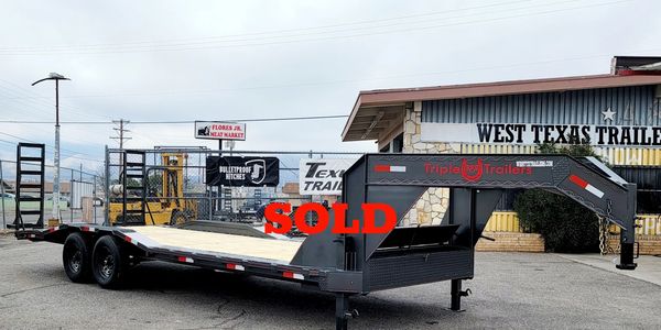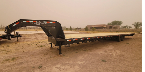 102"x40' GOOSENECK FLATBED • 16K G.V.W.R. • 2-8,000 LB DEXTER EZ LUBE SPRING AXLES • ELECTRIC BRAKES • 2 5/16" 25K GOOSENECK COUPLER • 12x19lb I-BEAM MAIN FRAME AND NECK • FRONT LOCKABLE TOOL BOX • 4" TORQUE TUBE • 2" TREATED WOOD FLOOR • 2-10K SPRING LOAD DROP LEG JACKS • FLUSH MOUNTED LED LIGHTS • 3" CHANNEL CROSSMEMBERS ON 16" CTRS. • STRAIGHT DECK • 7' SLIDE-IN RAMPS • 235/80R16 18PR LR E RADIAL TIRES 16" • 8 LUG BLACK WHEELS • SPARE MOUNT W/SPARE